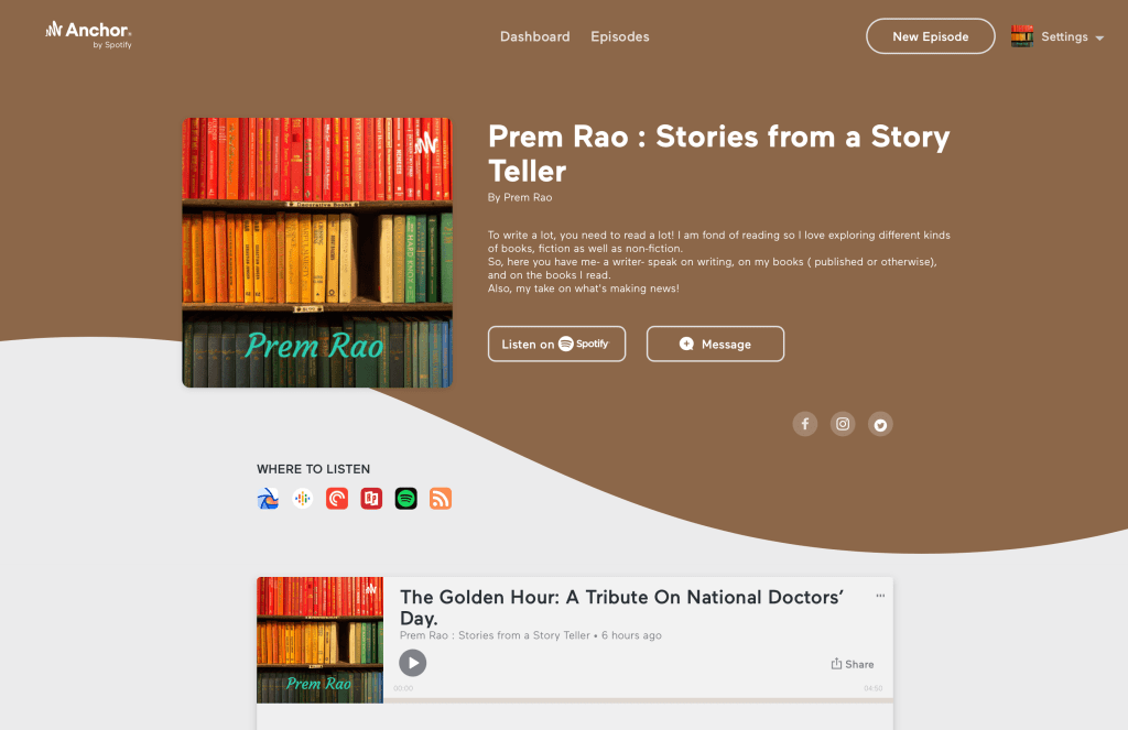 Overall, it looks interesting and I am very excited to be part of Goodpods. I am certain it will give me the opportunity to listen to some incredible podcasts. I am also hopeful that it will build an audience for podcasts in my Podcast Show, ” Prem Rao: Stories From A Story Teller”.